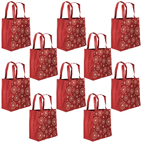 ReBagMe Large Reusable Grocery Bag Totes with Extra Reinforced Handles - Red (Pack of 10)