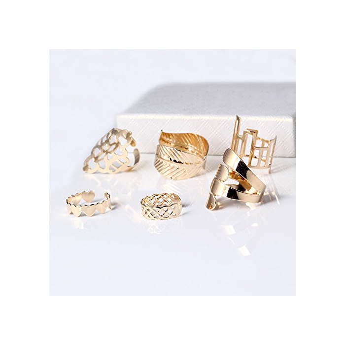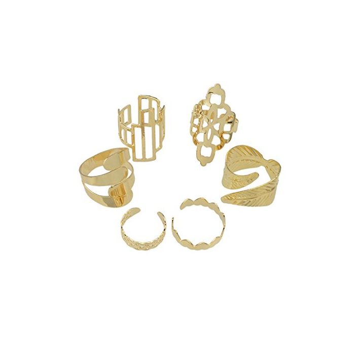 원본상품명:KOZEEYパンク風 合金 ラインストン 指輪 ゴルド 6個 セット 調節可