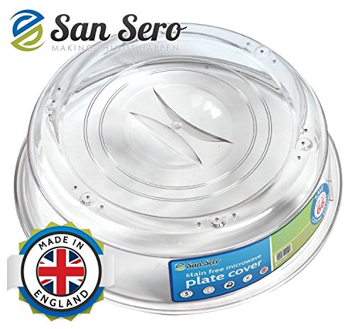 San Sero 10.5 Inch Vented Microwave Plate Food Cover Lid Guards Against Splatter and Splash, Lowers Energy Cost and British Made from Strong Polycarbonate