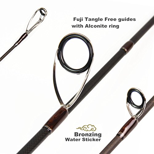 Ultra lightweight and super-sensitive, very strong based on the "TORAY" high modulus carbon fiber and 1K*1K woven cloth made in Japan. The newest Fuji Tangle Free guides with Alconite ring, very smooth and amazing. The high quality 4A grade cork from Europe. All this brings a unique and miraculous fishing experience to users.