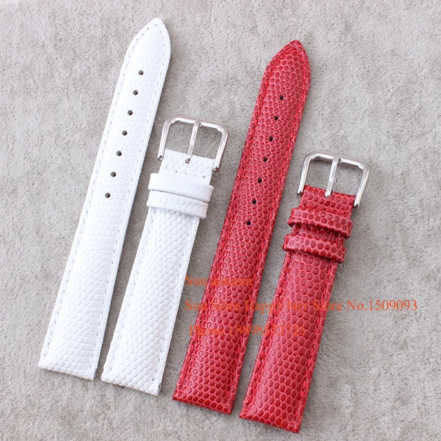 | [해외] 도매 도마뱀/뱀 곡물 레드 화이트 여성 시계 줄, 12 14 16 18 20 미리메터 솔리드 핀 정품 가죽 스트랩 패션 팔찌 |