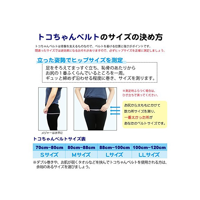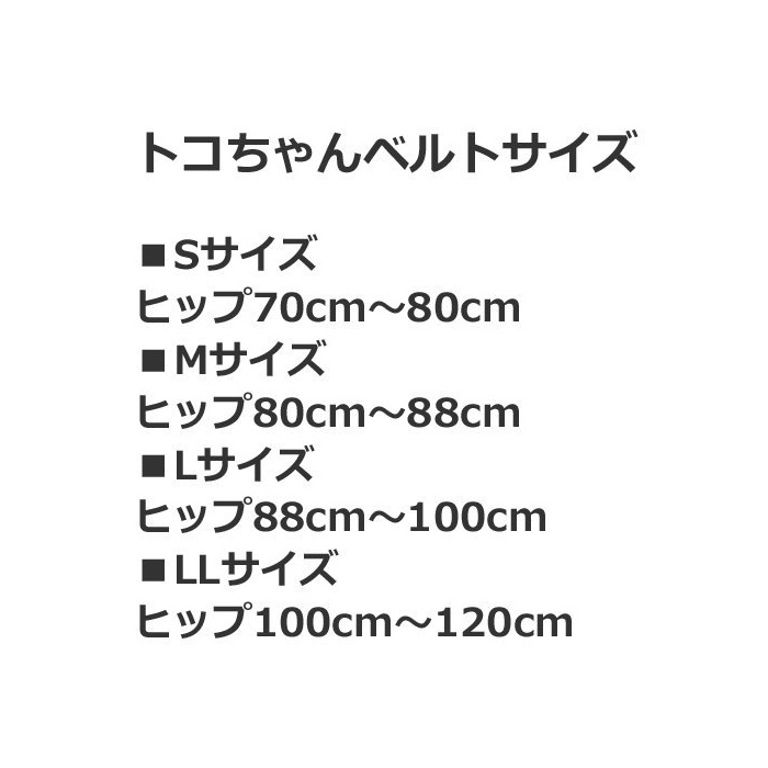 토코짱 벨트의 사이즈는,양복 등의 사이즈란 다릅니다.반드시 지금의 힙 사이즈에 선택해 주셔서,적응 사이즈를 구입해 주십시오.힙 사이즈가 경계선의 임산부씨에게는,원 사이즈상을 권장합니다.