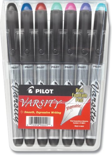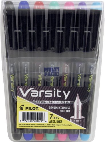 Pilot Varsity Disposable Fountain Pens, 7-Pack Pouch, Assorted Color Inks (90029)