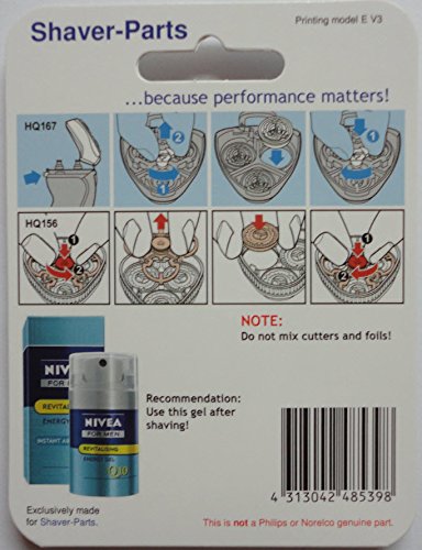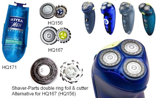 -. Feature : New alternative for older Norelco (Philips) Coolskin shaving-heads, set of 3 pieces, double ring foils. / It's a must to use shaving lotion HQ170 or HQ171 during shaving (shaving-heads are washable). / 95% of our customers are satisfied with shaving performance. This is not a Philips Genuine Parts. / Suitable for Philips, Philishave, older Coolskin models, see description which model-numbers. / Replacement for older Norelco (Philips, Philishave) Coolskin HQ167 & HQ156. See number on your shaver.