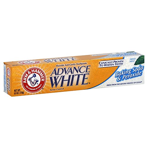 -. Binding : Health and Beauty -. Brand : Arm & Hammer -. EAN : 0033200186267 -. Feature : Arm & Hammer Advance White is specially formulated with refined dental grade Baking Soda to give you a noticeably whiter, brighter smile / Arm & Hammer -. IsAdultProduct : 0 -. Label : Arm & Hammer -. Manufacturer : Arm & Hammer -. NumberOfItems : 1 -. PackageQuantity : 2 -. ProductGroup : Beauty -. ProductTypeName : HEALTH_PERSONAL_CARE -. Publisher : Arm & Hammer -. Size : 6 -. Studio : Arm & Hammer -. Title : Arm & Hammer Advance White Extreme Whitening Baking Soda and Peroxide Toothpaste Mint -- 6 oz -. UPC : 033200186267