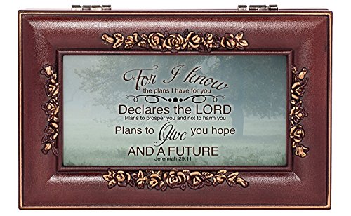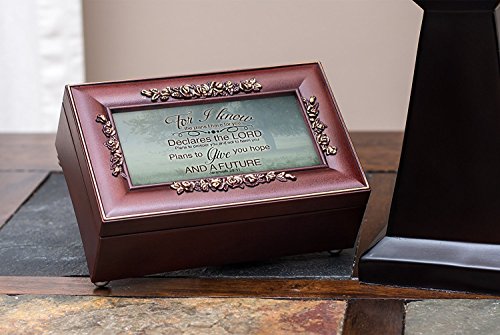 Misty Meadow Tree Jeremiah 29:11 Rose Wood Finish Jewelry Music Box Plays Canon in D