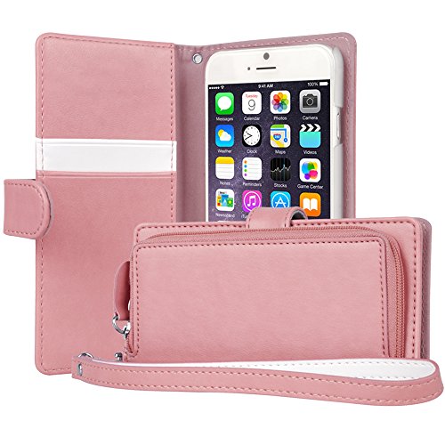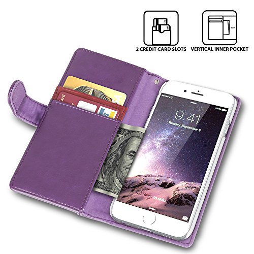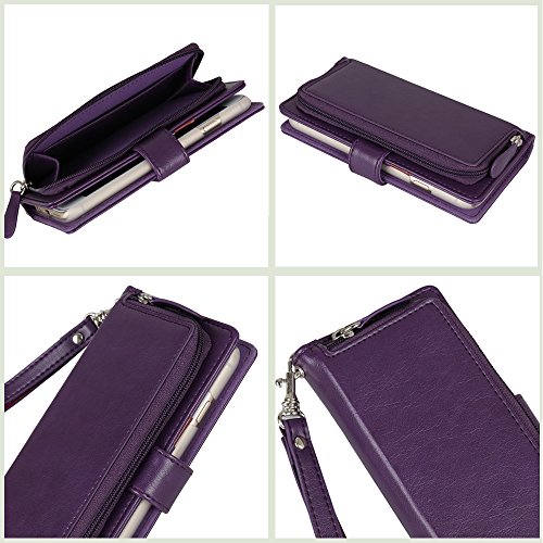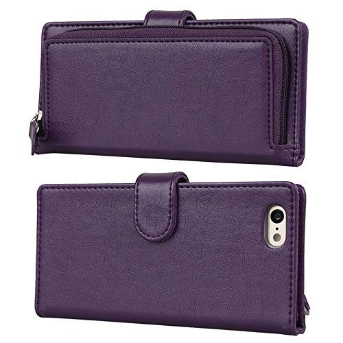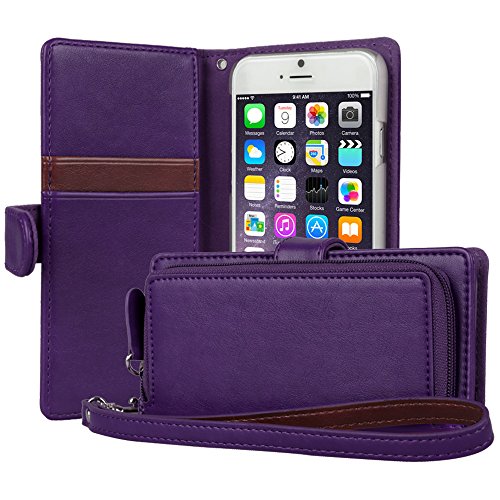 iPhone 6 Case, TORU [ZIP WALLET] iPhone 6S Wallet Case with [CARD SLOT] [ZIPPER POUCH] [WRISTLET] Premium Leather Flip Cover Case with Strap for Apple iPhone 6/6S - Purple