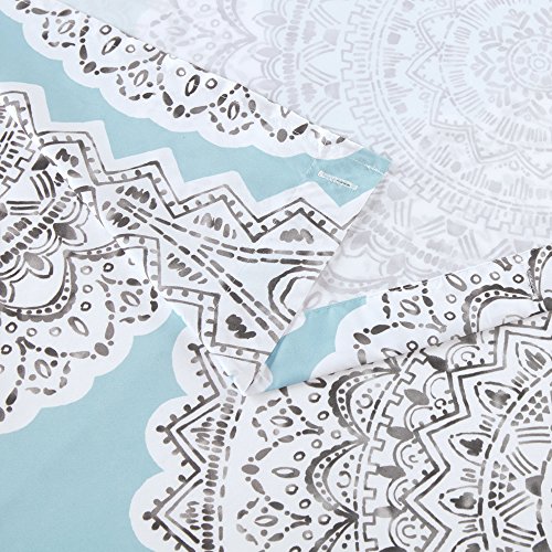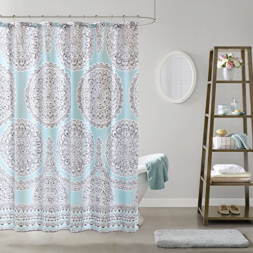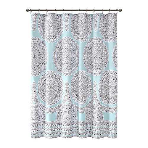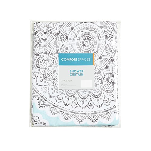 Comfort Spaces - Adele Shower Curtain - Aqua and Grey - Printed Medallions Pattern - 72" X72"