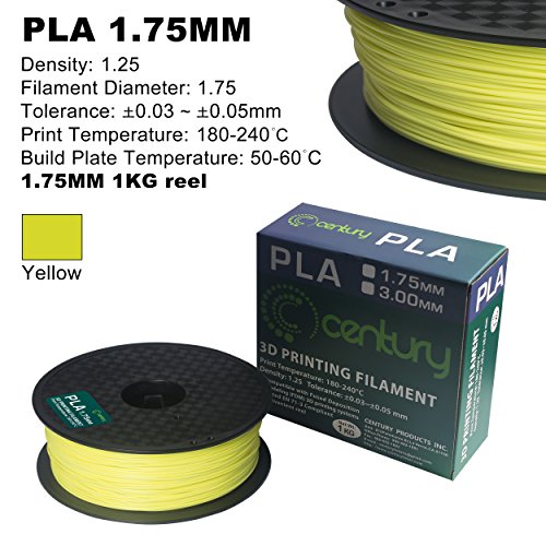 Century 3D PLA Printer Filament 1.75mm 1kg spool 2.2 pounds Dimensional Accuracy +/- 0.05 mm (Fluorescent Yellow)