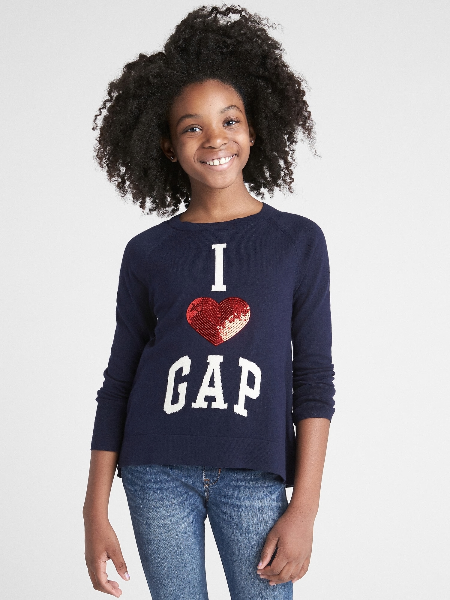 컬렉션 :2018 Fall/Winter디자인 포인트 :- LOVE GAP 스웨터. 섬세하고 부드러운 조직감으로 착용감이 좋음. 하트 스팽글. 뒷 기장이 더 긴 디자인스타일링 추천 :데님팬츠, 캐쥬얼 팬츠와 함께 캐쥬얼하게 스타일링