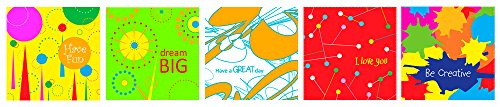 Colourful reusable cloth napkins designed for kids A positive message printed on each napkin Sized perfectly for lunchboxes - approximately 10 inches x 10 inches Sewn-in label with space to write your child 's name 100% cotton Machine washable CPSIA Compliant, lead and phthalate free Designed in Canada