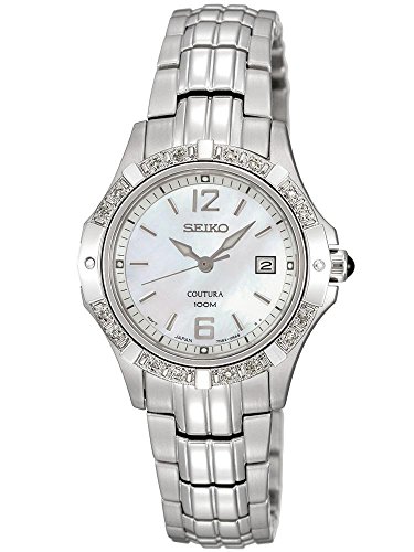 -. Title : Seiko Coutura Diamond Quartz Stainless Steel Mother-Of-Pearl Dial Watch SXDE19