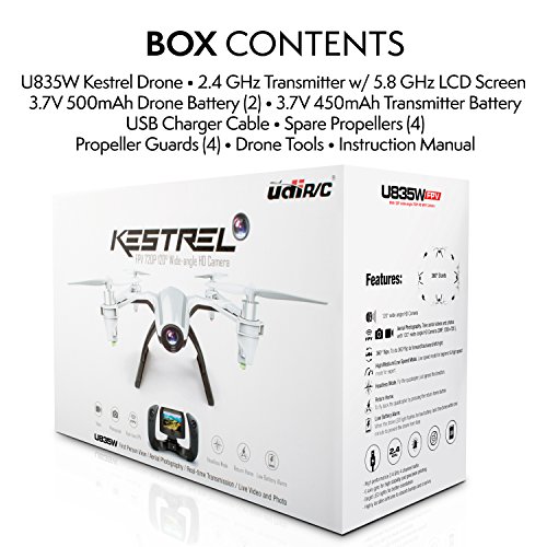 -. Binding : Toy -. Brand : Force1 -. EAN : 0645380996620 -. Feature : 4" VIDEO REMOTE: Grab the yoke on this HD drone with camera live video and fly it like a real jet / 1-KEY FLYING + 3 SPEEDS: Indoor/outdoor HD drone does 360° flips, returns home or adjusts speeds with 1 button / 720P HD CAMERA DRONE: Store sharp pics/video from the drone camera on the free 8GB micro SD card / AGILE + STABLE: Great kids drone or drone for beginners; a 6-axis gyro, Altitude Hold and Headless Mode make flying fun / QUALITY ASSURED: We look forward to exceeding your expectations in every way, and are happy to provide a full refund if you're not 100% satisfied -. IsAdultProduct : 0 -. Label : UDIRC -. Manufacturer : UDIRC -. MPN : U835 -. PartNumber : U835 -. ProductGroup : Toy -. ProductTypeName : TOYS_AND_GAMES -. Publisher : UDIRC -. Studio : UDIRC -. Title : UDI Mini Camera Drone with FPV - “Kestrel” U835 Camera Live Video Drone WiFi with Altitude Hold and 4 Inch LCD Color Display Remote for Stunt Quadcopters -. UPC : 645380996620