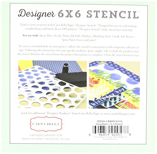 Carta Bella Paper Company Happy a Merry Christmas Snowflakes # 3 Stencil Set, 6 x 6"
