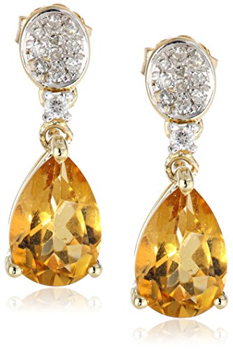 -. Title : 10k Yellow Gold Pear-Shape Citrine and Diamond Drop Earrings (.13cttw, I-J Color, I2-I3 Clarity)