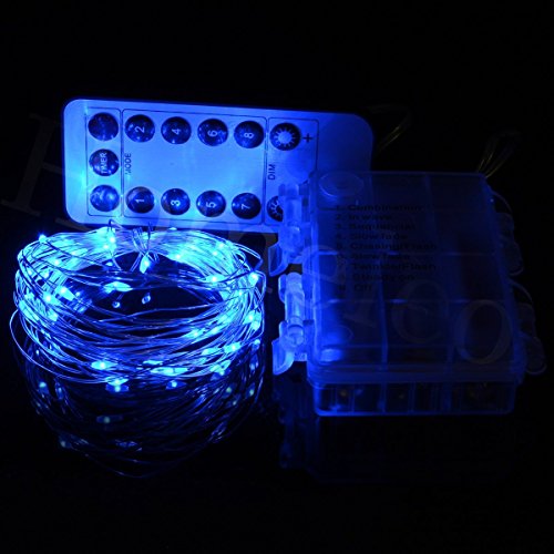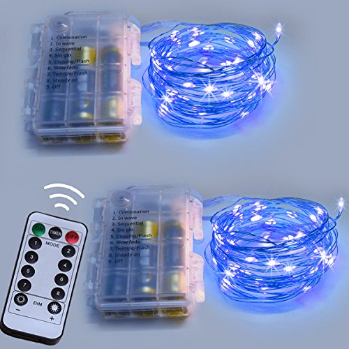 Homeleo 2 Set Battery Operated LED Copper String Lights, 16.4ft 50 LED 8 Modes Dimmable Fairy Lights with Remote Control(Blue)