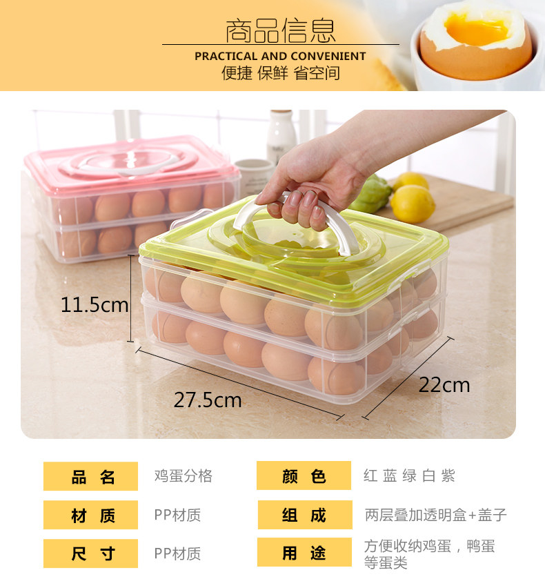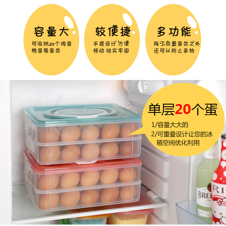 鸡蛋盒 冰箱食物收纳盒子保鲜速冻鸡蛋托鸭蛋包装盒塑料蛋格可叠