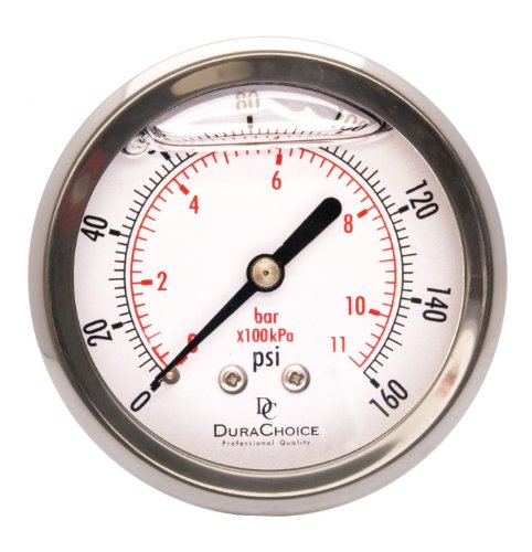 2-1/2" Liquid Filled Pressure Gauges - Stainless Steel Case, Brass, 1/4" NPT, Center Back Mount Connection 0-160PSI