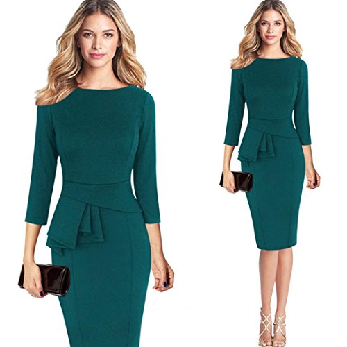 Binding : Apparel Product Description Product information: Season: Autumn, Spring, Summer Gender: Women Occasion:Work Material: Polyester, Cotton Pattern Type: Solid Sleeve Length: Three Quarter Decoration: None Fit: Fits ture to size Thickness: Standard Weight:370-400g What you get:1*Women dress Size Chart(Unit:cm/inch) Size: S------Bust: 86cm/33.9"------Waist: 68cm/26.8"------Shoulder:38cm/15.0"------Sleeve Length:42cm/16.5"------Length: 96cm/37.8" Size: M------Bust: 92cm/36.2"------Waist: 72cm/28.3"------Shoulder:39cm/15.4"------Sleeve Length:43cm/16.9"------Length: 97cm/38.2" Size: L------Bust: 98cm/38.6"------Waist: 76cm/29.9"------Shoulder:40cm/15.7"------Sleeve Length:44cm/17.3"------Length: 98cm/38.6" Size: XL------Bust: 104cm/40.9"------Waist: 80cm/31.3"------Shoulder:41cm/16.1"------Sleeve Length:45cm/17.7"------Length: 99cm/39.0" 0