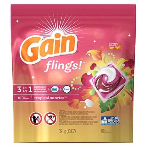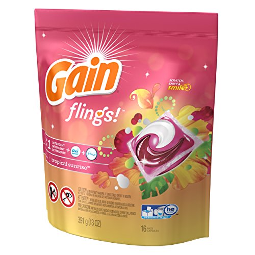 Gain Flings Tropical Sunrise Laundry Detergent Packs, 16 Count (Pack of 6)