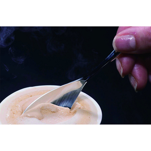 ●他金属のものに比べて手の温もりをダイレクトに伝えるため、即座に先端まで伝わり、固く凍った氷材でさえ、淡雪のように優しく溶けていきます。