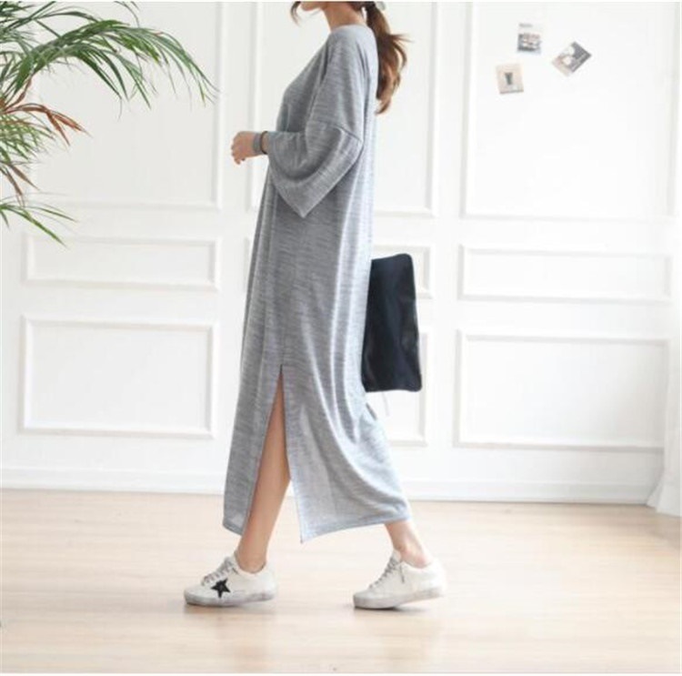Tシャツワンピース ロングワンピース サイドスリット無地 カジュアル着回し