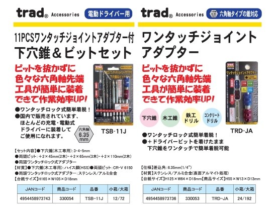 【商品名】(業務用2個セット) TRAD 下穴ドリル&ビットセット 【電動ドライバー用】 ジョイントホルダー付 TSB-11J 〔DIY用品/大工道具〕