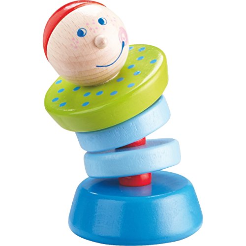 This friendly-faced clacking figure is made of solid beech wood pieces, held together with sturdy yet flexible cord. Stand him up in front of baby and watch as a smile spreads across their face. Watch them inspect it and then reach for it! Made in Germany and colored with a non-toxic water based stain.