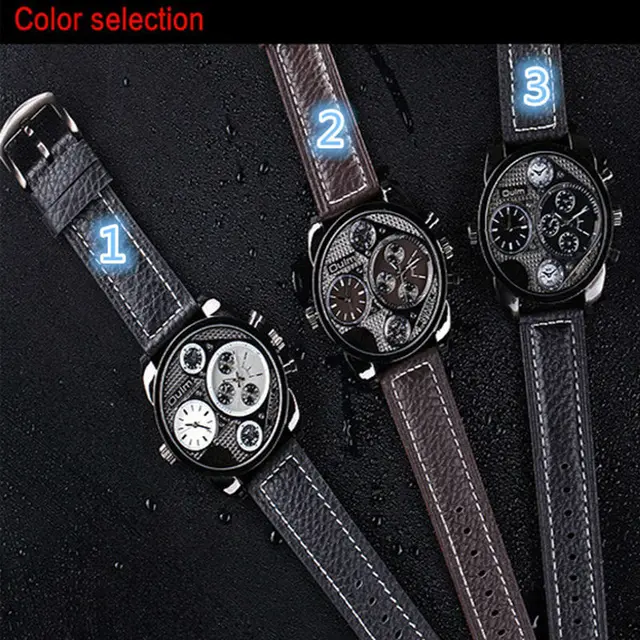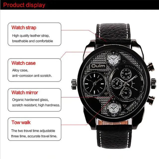 | 설명 | 최고 럭셔리 브랜드 Oulm 9316 남성 큰 다이얼 얼굴 정품 가죽 밴드 남성 캐주얼 군사 손목 시계 Relogio Masculino |