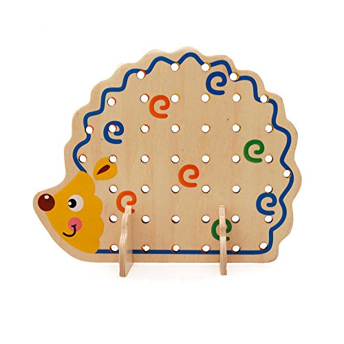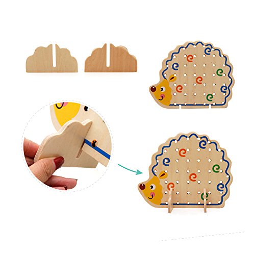 Includes around 80 wooden beads, wooden needle, cotton lace and wooden hedgehog shape board