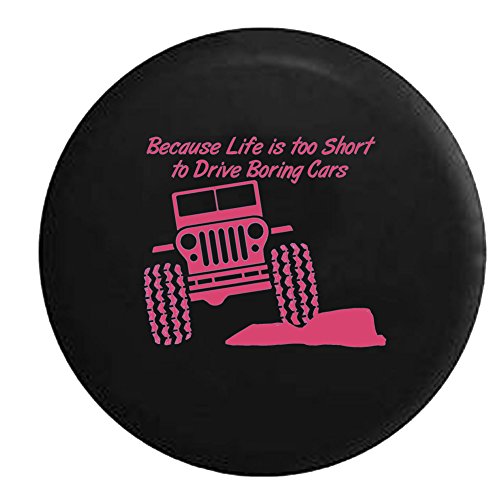 Pink - Jeep Life is too Short to Drive Boring Cars Rock Climbing Spare Tire Cover OEM Vinyl Black 28-29 in