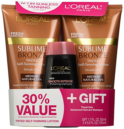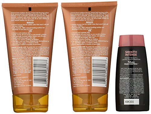 Treat yourself to an instant, streak-free tan. Sublime Bronze Tinted Self-Tanning Lotion for Medium Natural Tan provides an instant bronze glow while a streak-free sunless tan develops. Vitamin E and gentle AHAs leave the skin smooth and soft. Medium Natural Tan will be two shades darker than your natural skin tone. Results may vary. Continue to use Sublime Bronze until you have reached your desired level of tan. With alpha hydroxyl acid (AHA) derivative. Smooth Intense Polishing Shampoo instantly helps soften and tame rough textures, leaving hair polished and smooth. When used with the conditioner and serum or creme it controls frizz for up to 72 hours. Clinically tested System of shampoo and conditioner tested for instant results + lasting transformation.Feature