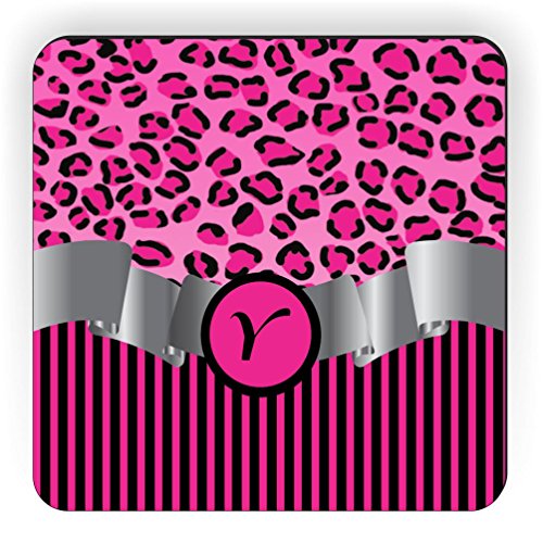 Rikki Knight Letter "Y" Initial Hot Pink Leopard Print and Stripes Monogrammed Design Square Fridge Magnet
