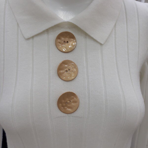 감각적인 버튼 장식이 돋보이는 풀오버 니트 입니다 브이넥 실루엣의 카라 디자인이 한층 스타일리쉬하며 나일론 혼방 레이온 원단으로 감촉이 부드럽고 신축성이 우수합니다 바디라인에 피팅되어 슬림하게 실루엣을 연출할 수 있습니다