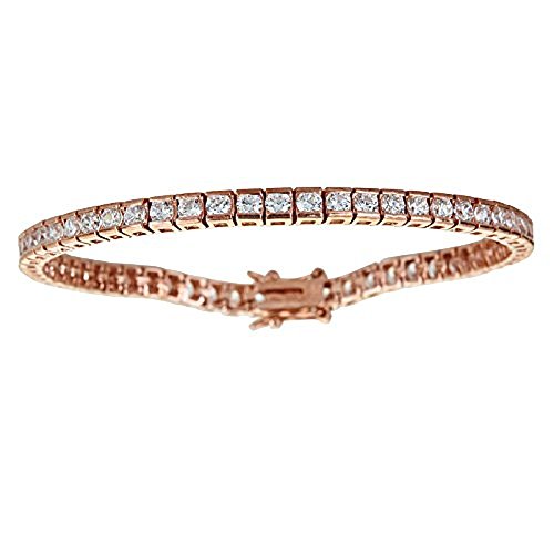 Sterling Silver Rose 3mm Round Cut Channel Set Cubic Zirconia Tennis Bracelet