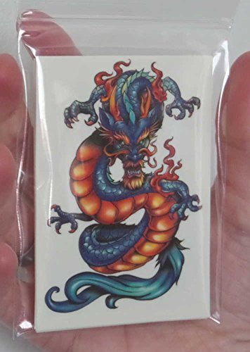 -. Feature : 10 fantastic colorful dragon temporary tattoos, complete set, each on a separate sheet. / Each tattoo sheet measures 3.5" by 2.5". One tattoo per sheet. / Tattoos are non-toxic, hypoallergenic, and use FDA certified colorants. / Instructions for application and removal are on the back of each sheet. / Perfect as a gift or for party favors. Packaged in a plastic bag.