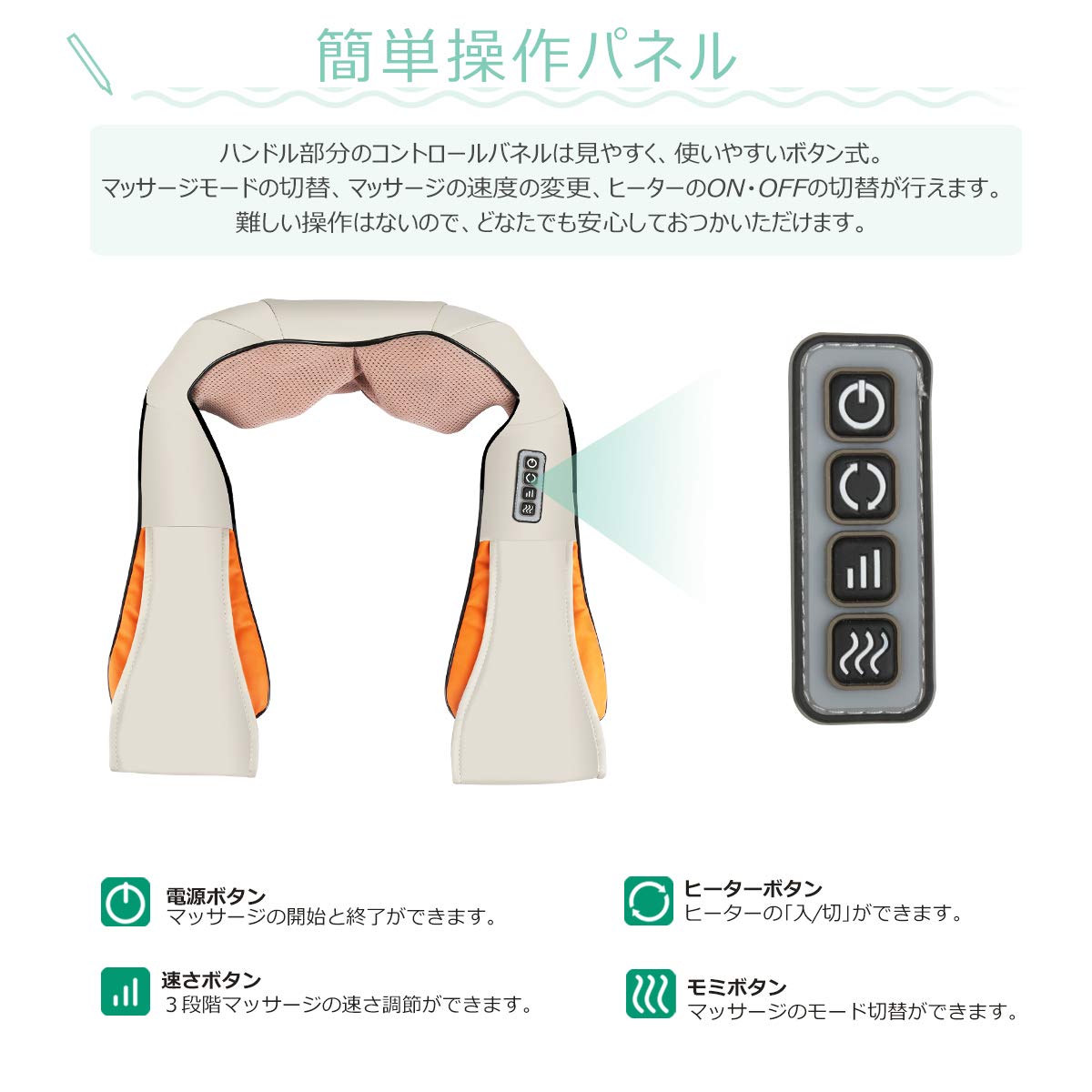 ✦【多機能】三つ段階のスピードを備え、サラリーマン、お年寄りなどは自分に合った力でマッサージできます。内蔵した過熱保護装置で、15分続けて使用後自動的にオフとなります。マッサージを楽しみながら寝ても心配なし、より安全かつ安心!