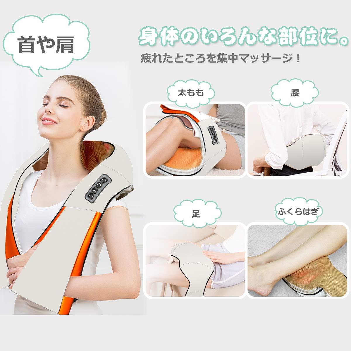 ✦【16つもみ玉】16つのもみ玉で本格マッサージ。左右に8つずつ配置された大/中/小のもみ玉が回転することになり、人の手でマッサージされているような快適です。60秒ごとに正転/反転を繰り返すことで同方向に回転し続けるよりもコリがほぐれやすくなります。約35度のヒーター機能を搭載、血行促進、疲労回復、筋肉の疲れをとる、肩こり、腰痛などの問題が改善して、神経痛・筋肉痛を緩解でき、疲れやストレスがなくなりました。