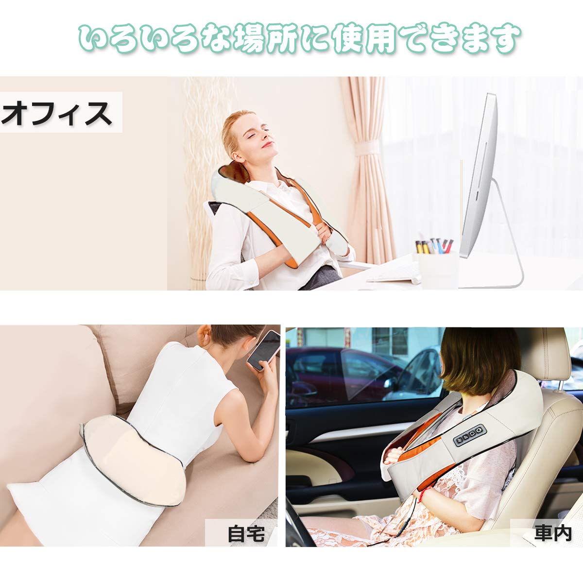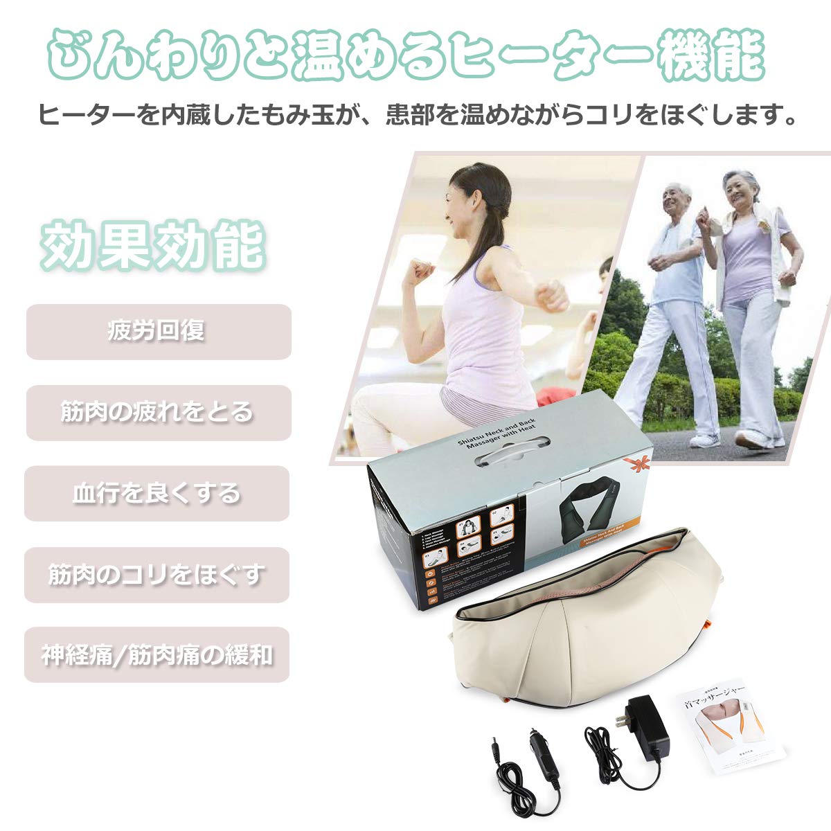 ✦【様々な場合に使用可能】二つの給電方式あり、家庭用アダプターと車用シガーソケットです。自宅でもオフィスでも車内でもマッサージできます。日本語説明書付き、操作方法はとてもシンプル!どなたでも迷うことなく。自分用ももちろん、両親、恋人、目上などへのプレゼントならさらに適用!