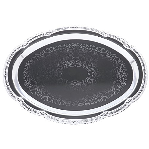 Studio : American Metalcraft Publisher : American Metalcraft Binding : Kitchen Product Description This affordable elegance serving tray is made of stainless steel material. It is essential to elegant buffet and catering service. Hand wash only and polish dry with a soft cloth. Available in chrome finish and oval shape. Measures 15-inch width by 10-inch width. 0