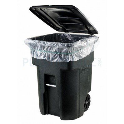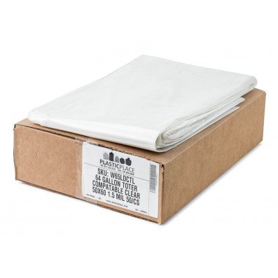 Plasticplace 64 Gallon Toter® Compatible Trash Bags, 1.5 Mil, Clear, 50 / Case - W65LDCTL - 50" x 60", Gusset Seal, Extra-Heavy Garbage Bag