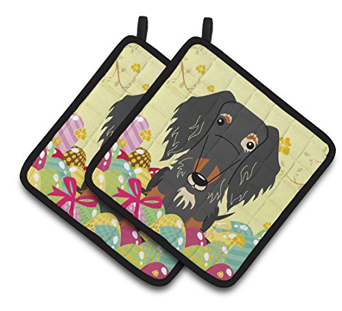 Caroline's Treasures BB6128PTHD Easter Wire Haired Dachshund Pair of Pot Holders, 7.5" x 7.5", Multicolor