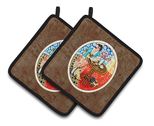 Caroline's Treasures Lady with Her Pug Pair of Pot Holders 7259PTHD, 7.5HX7.5W, Multicolor