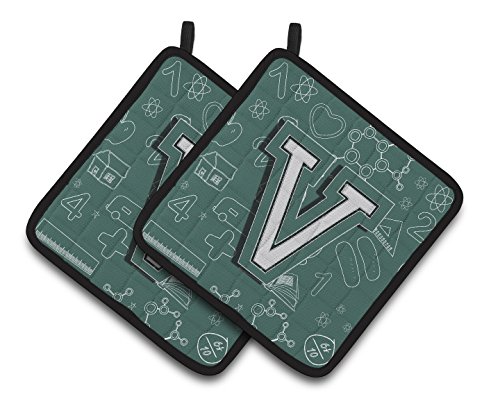 Caroline's Treasures Letter V Back To School Initial Pair of Pot Holders CJ2010-VPTHD, 7.5HX7.5W, Multicolor