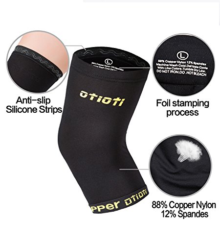 -. Feature : Copper Knee Sleeves for Support & Recovery - The copper knee sleeve improves recovery by stimulating oxygen delivery and promoting blood flow to muscles. Relieves musle stiffness and promotes accelerated recovery from arthritis,osteoporosis,tendonitis,aches and pains. Reduces the risk of injury by maintaining optimal joint temperature and providing stability. / Super Comfortable Copper Knee Brace - The knee brace has copper infused compression sleeves about 88% copper nylon and 12% spandex. It's breathable and lightweight,which keeps you dry and comfortable even in times of extended wear. This knee brace can be 4 way stretched so as to fulfill all your demanding running and weightlifting needs. Full range of motion with the comfortable knee brace. / Anti-slip Silicone Strip - This copper compression knee brace wraps your knee and prevents damage your muscles,joints,tendons and ligaments. A low profile design fits comfortablely under your clothing while a non slip silicone band keeps your knee sleeve in place and prevents it from sliding down. / Knee Support Sleeves for Women & Men - Offering more than just support, the copper knee sleeves are an ideal choice for athletes,busy workers, and anyone who needs dealing with everyday soreness. Durable, lightweight and comfortable, Our knee brace provides any men and women with exceptional knee support,secure and the pain relief they need during their fitness regimes or everyday lives. / High Performance Knee Support Sleeves - Perfect for jogging,running,basketball,tennis,weight lifting,working out and all the sports. Are you a sports fantatic,a weightlifting madman or simply a running enthusiast, our knee compression brace will do its job for you. It will minimizes injury, offers otimal muscle support between workouts and during casual everyday activities.