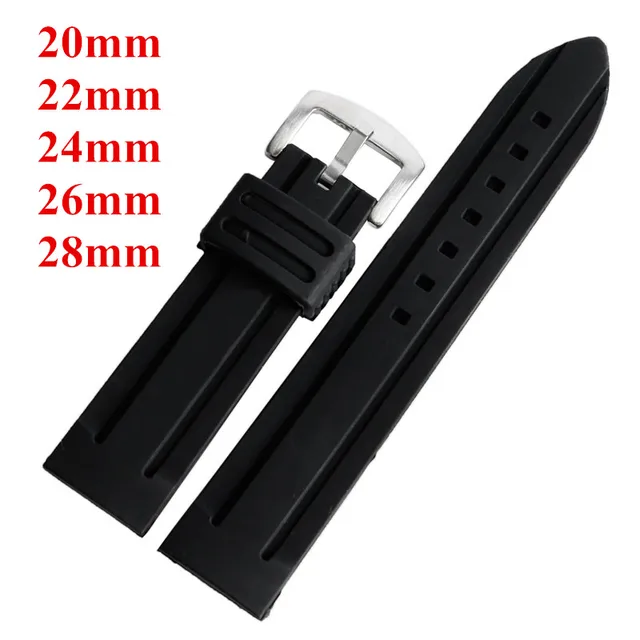 | [해외] 20 미리메터 22 미리메터 24 미리메터 26 미리메터 28 미리메터 실리콘 손목 시계 블랙 고무 스트랩 핀 버클 교체 부드러운 스포츠 다이빙 방수 |