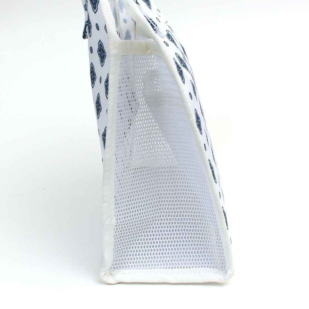A spa bag that is self-supporting with sideways mesh.