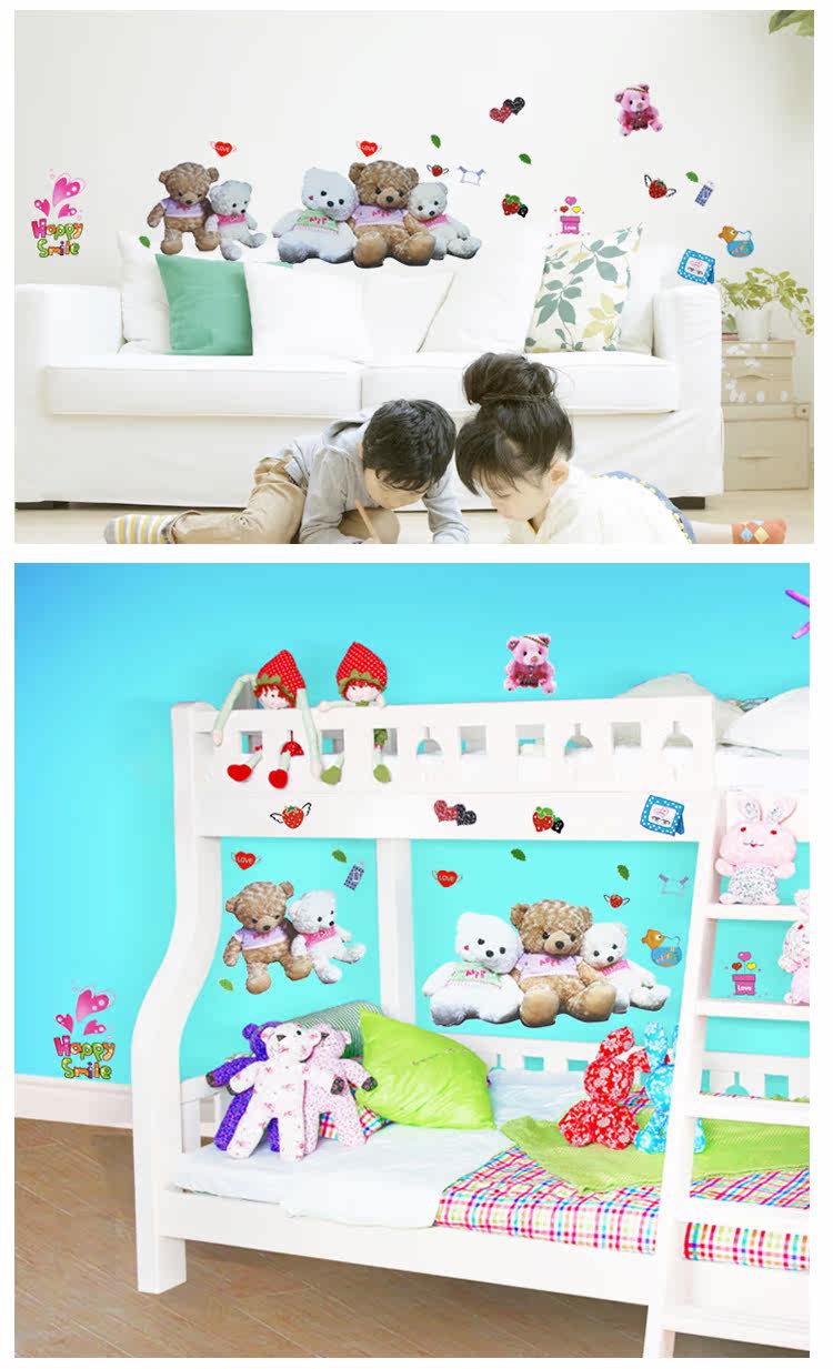 泰迪熊 儿童房间卧室床头客厅沙发背景墙贴卡通贴纸 可移除墙贴纸