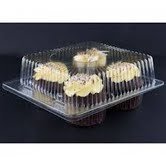 - This sturdy, clear cupcake holder’s protective ridged layer makes your product sturdier for display and stocking, all whilst the plastic construction offers maximum clarity. With the large space there is extra room for colorful icing. This baking product is a steal for the baking industry for a business of any size. Dimensions: 8” x 8 ¼” x Hight - 3 ¼”.