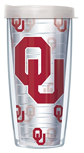 University of Oklahoma Repeat Logo on Clear 22 Oz Traveler Tumbler Mug with Lid